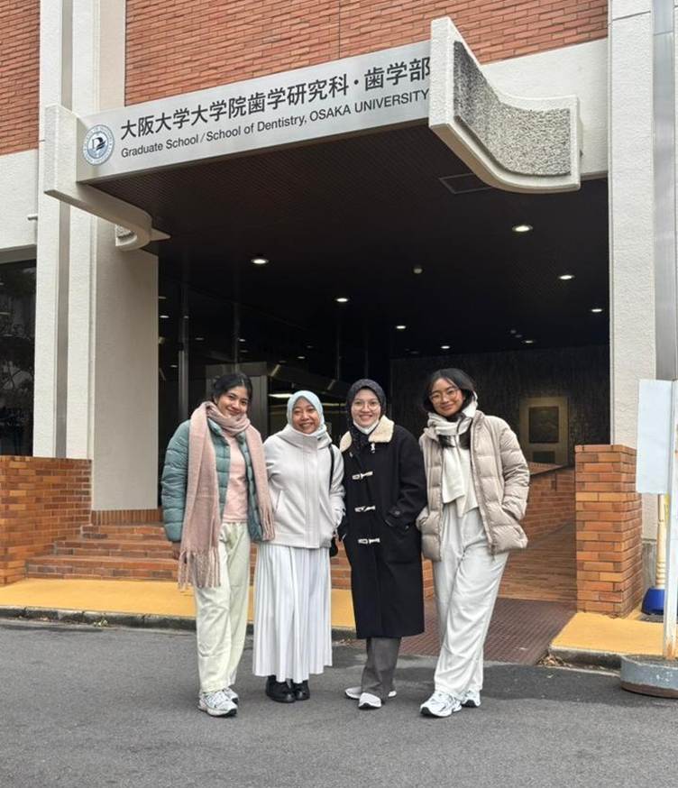 Taskara Shafa Lantika (Koas 83), Luthfika Fadhilatul Auliya (Koas 86), & Putu Rani Wulandiva (Koas 83), 3 mahasiswa profesi dokter gigi didampingi dosen Dr. drg. Niswati Fathmah Rosyida, MDSc., Sp.Ort FKG UGM, momen istimewa itu justru menjadi pelajaran paling berkesan selama mengikuti International Student Week (ISW) di The University of Osaka, 26–30 Januari 2026
