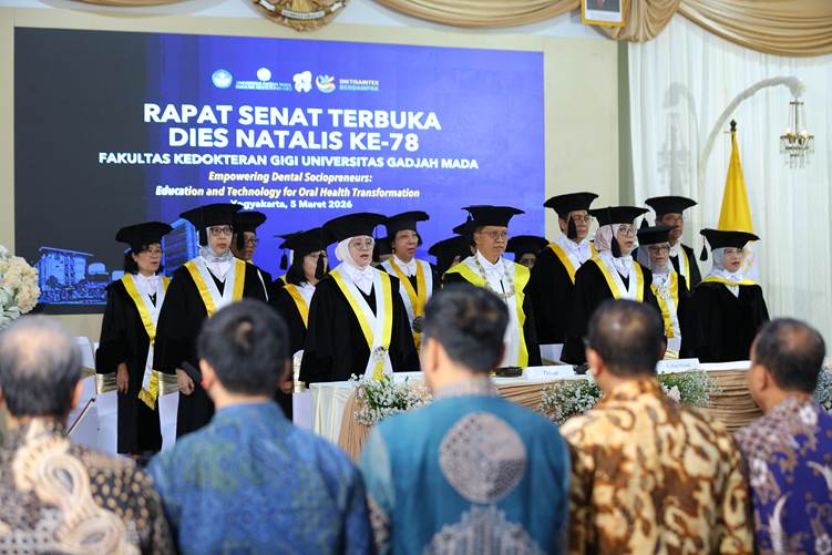 Pagi itu usai hujan membasuh Kawasan UGM Kamis, 5 Maret 2026 halaman FKG UGM diwarnai wajah-wajah dari berbagai generasi. Ada profesor senior yang puluhan tahun lalu memulai karier akademiknya di ruang klinik sederhana, ada pula mahasiswa yang baru beberapa semester mengenal dunia kedokteran gigi. Di antara mereka berdiri dalam satu kesadaran yang sama, yakni melihat perjalanan panjang sebuah institusi yang kini memasuki usia 78 tahun.