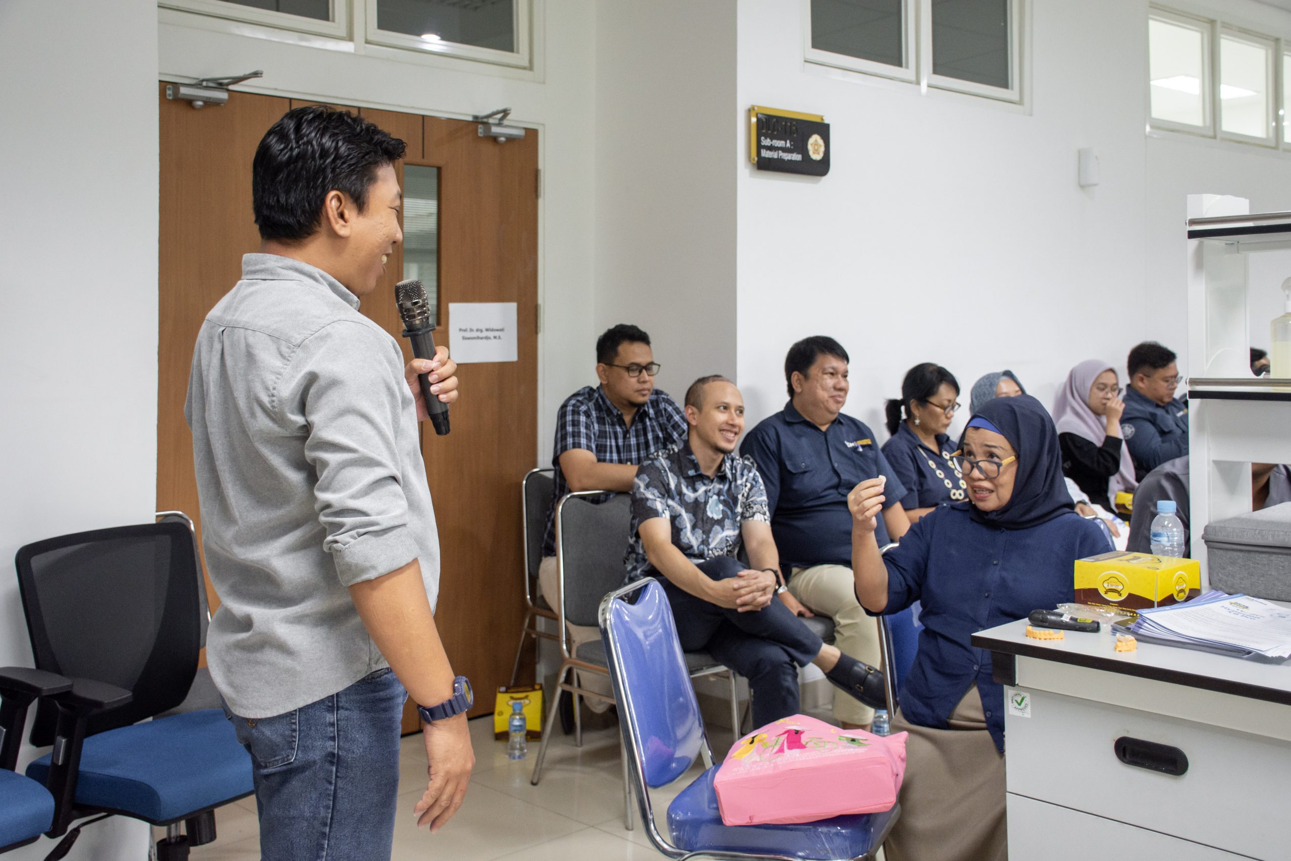 Workshop yang berlangsung di Ruang 114 Technician Room, Gedung Dental Learning Center (DLC) Lantai 1 ini menyoroti integrasi teknologi pemindaian digital, perancangan surgical guide, hingga proses manufaktur berbasis 3D printing sebagai satu kesatuan alur kerja klinis yang presisi.