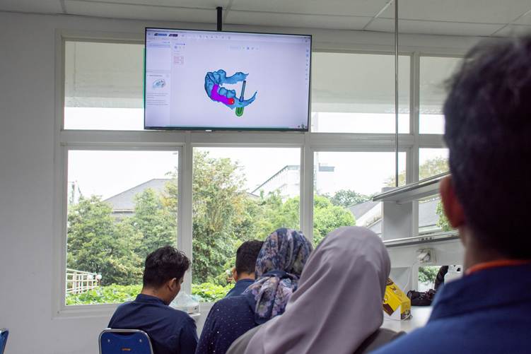 Pada sesi praktik, peserta mengikuti simulasi desain surgical guide menggunakan perangkat lunak Atomica. Desain tersebut kemudian diwujudkan melalui mesin 3D printing Shining, memperlihatkan bagaimana teknologi manufaktur aditif dapat mendukung ketepatan pemasangan implan.