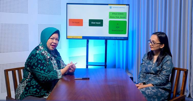 Prof. Ika menjelaskan bahwa obat rasional berarti obat yang: Tepat indikasi. Tepat dosis. Aman terhadap kontraindikasi. Memiliki efek samping minimal. Dikonsumsi dengan patuh oleh pasien