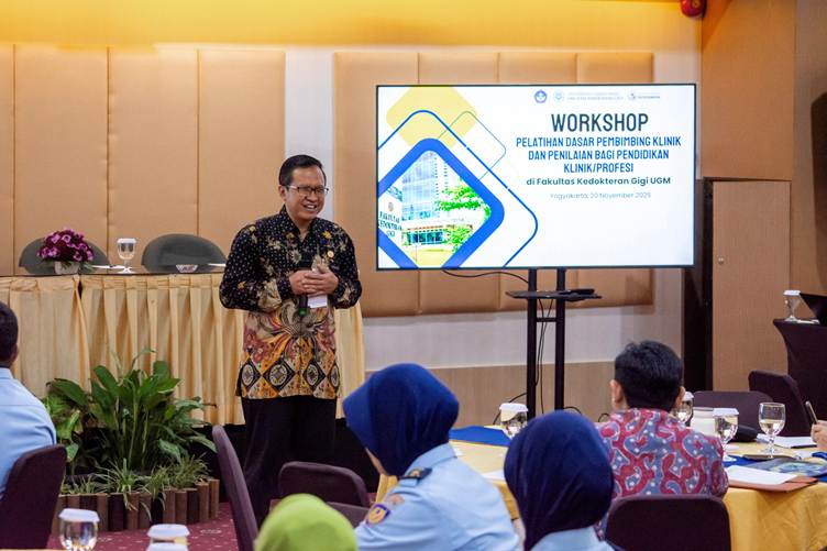 Yogyakarta, 2O November 2025 FKG UGM kembali menyelenggarakan Workshop Pelatihan Dasar Pembimbing Klinik yang diikuti 46 peserta dari Rumah Sakit Gigi dan Mulut (RSGM) UGM serta seluruh jejaring rumah sakit pendidikan. Kegiatan ini berlangsung selama dua hari dan menghadirkan dua narasumber utama, Dr. Ide Pustaka Setiawan, M.Sc., Sp.OG,