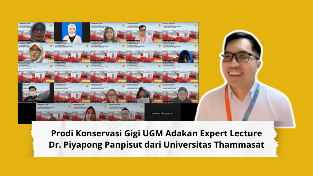 Program Studi Konservasi Gigi Fakultas Kedokteran Gigi Universitas Gadjah Mada (FKG UGM) menyelenggarakan kuliah pakar melalui Zoom pada 29 Februari 2024. Kuliah ini menghadirkan Dr. Piyapong Panpisut dari Universitas Thammasat, Thailand, yang membahas topik “Bioactive Materials in Restorative Dentistry.” Acara ini diikuti oleh 47 mahasiswa PPDGS Konservasi Gigi angkatan 2021, 2022, dan 2023.