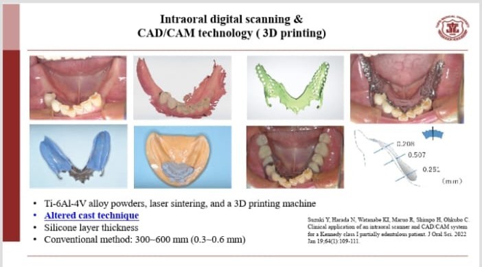 Teknik cetak untuk gigi tiruan sebagian lepasan, khususnya penggunaan cetak di area anterior dan posterior. Prof. Sheng-Wei Feng dari Taipei Medical University dalam Kuliah Pakar di Fakultas Kedokteran Gigi Universitas Gadjah Mada pada 21 Agustus 2025 menekankan bahwa meskipun buku teks menyarankan untuk menghindari cetak di area posterior, pengalaman klinis menunjukkan bahwa teknik cetak tersebut efektif jika diposisikan dengan tepat. Forum ini juga membahas teknik cetak digital, meskipun metode digital memiliki keterbatasan dalam mendeteksi karakteristik jaringan lunak dan menangani undercut, metode ini cocok untuk kasus dengan waktu pemindaian yang singkat dan resorpsi tulang yang minimal.
